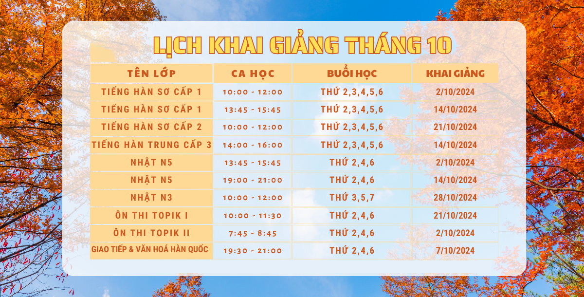 Dành cho học viên đã hoàn thành 15 bài trong giáo trình Tiếng Hàn Tổng hợp Sơ cấp 1 Hoặc vượt qua bài kiểm tra đầu vào do trung tâm tổ chức
